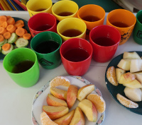 Zum Trinken steht Wasser, Kinder-Kräuter- und Früchtetee ungesüßt und Saftschorle zur Verfügung.