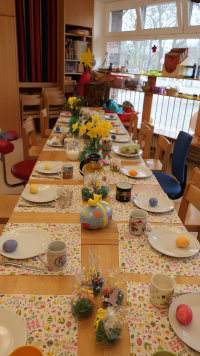 Gemeinsames Frühstück am geschmückten Tisch
